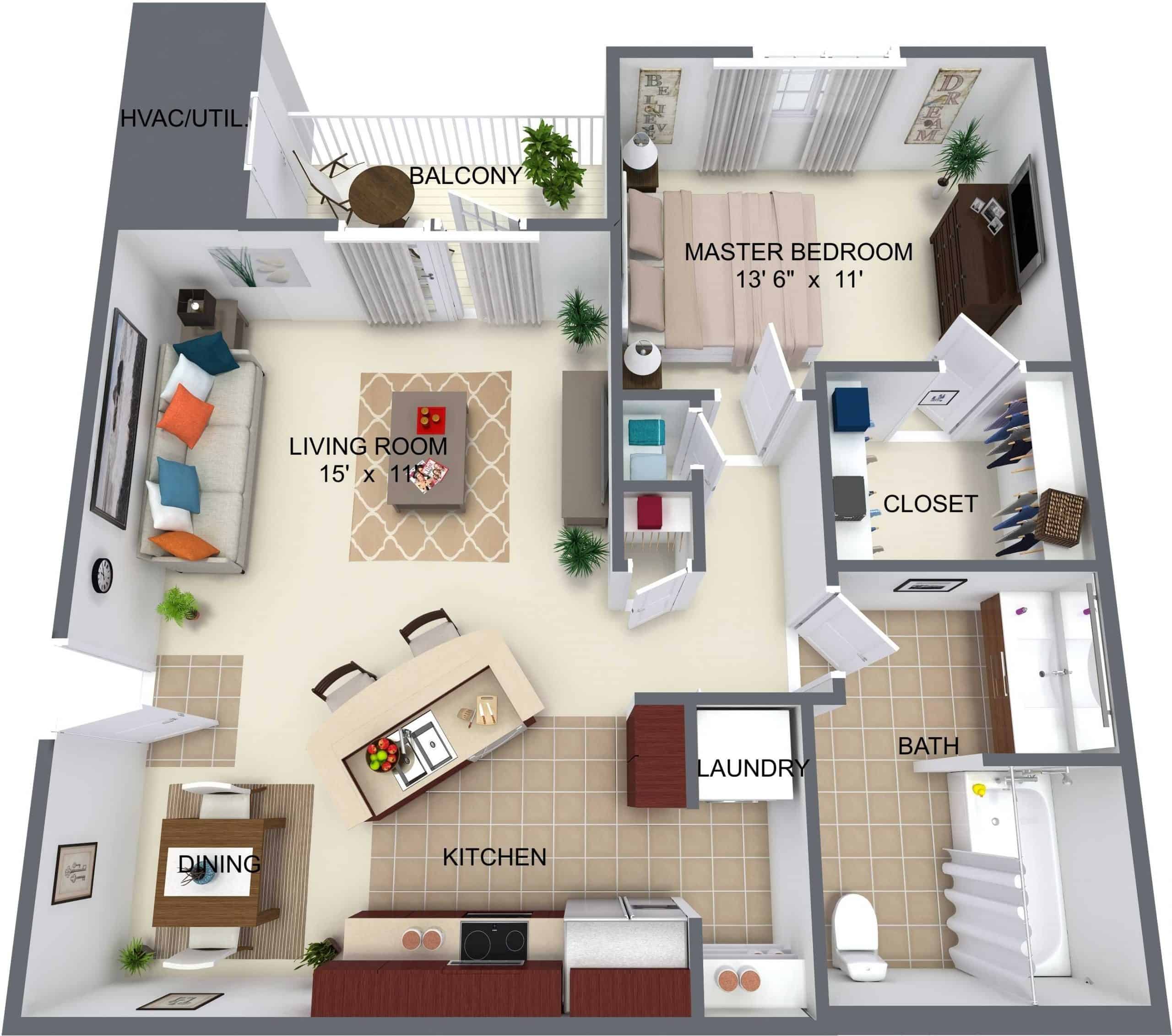 The Elizabeth: 1 Bedroom/1 Bath-849 sq. ft.