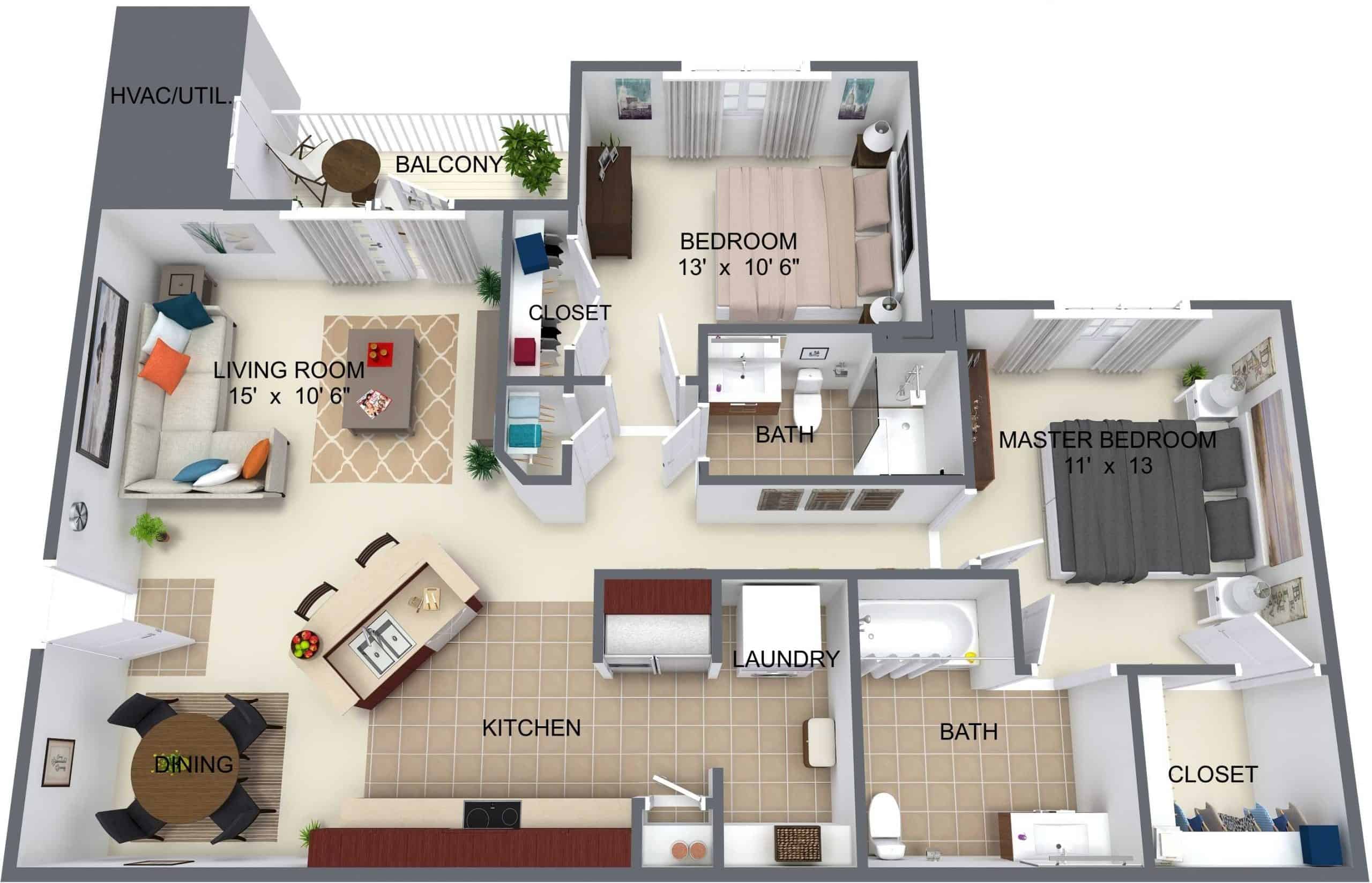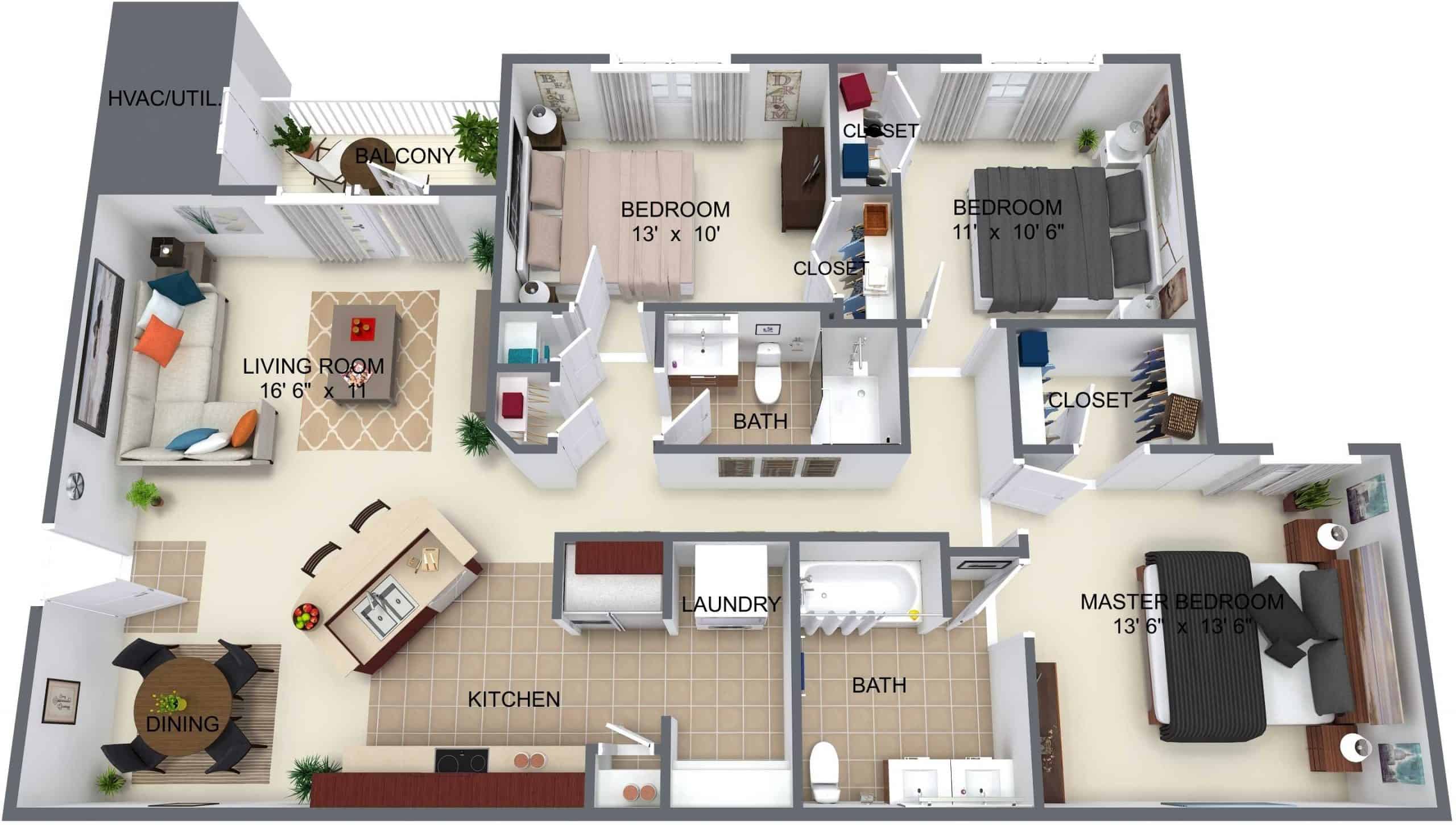 The Halstead: 3 Bedroom/2 Bath-1,364 sq. ft.